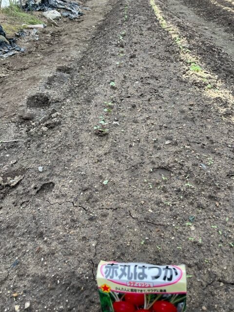 9月下旬に種を蒔いた紫大根は、何本かは消えましたが 順調に大きくなってきています。肥料もやりました。